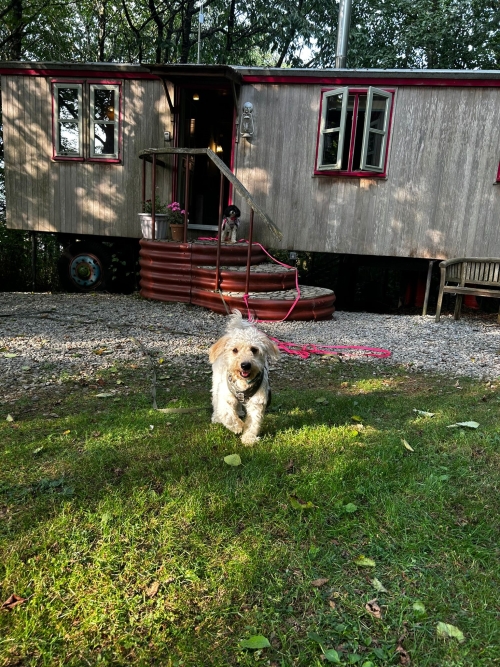 But the real highlight? The pups! Cookie and Biscuit had the time of their lives in the enormous, partially enclosed woodland garden. From sniffing out every corner to chasing each other through the trees, their tails didn’t stop wagging. It felt so good knowing they had their own safe little adventure playground while we relaxed.