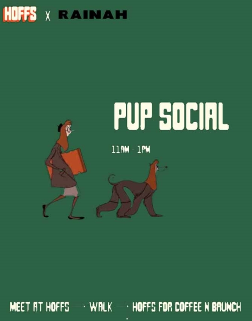 A monthly pup social at Hoffs in Margate - really casual, just a chance for dog people to meet up, have a coffee (or a drink), and let the pups hang out. There’ll also be a walk along the seafront after so the dogs can have a good stretch.