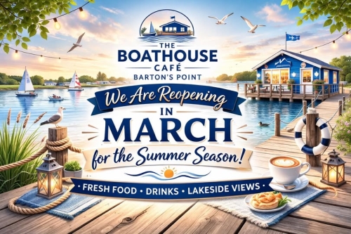 Dog-friendly Boathouse Cafe at Bartons Point open weekends from March 2026 hires for the water a bit later in the season. Check their Facebook page The Boathouse Cafe - Bartons Point for current information