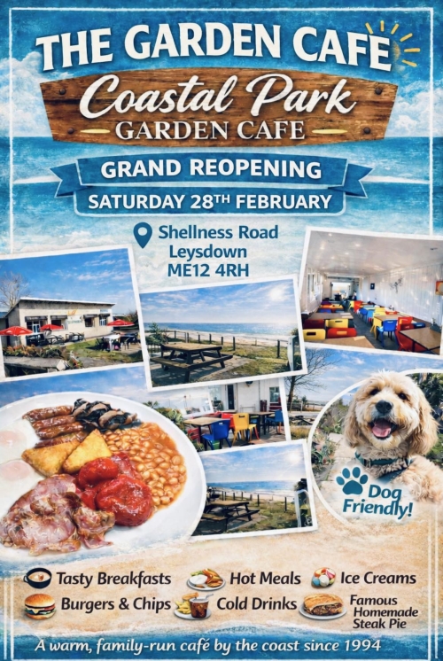 The Garden Cafe, Shellness Road, Leysdown-on-Sea, Isle of Sheppey Kent ME12 4RH |